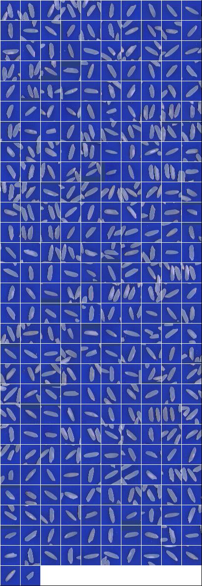 Índices de Qualidade:Peso da Amostra: 100.00 g ( 100.00 %) Discriminação dos defeitos: Inteiros Totais: 95.13 g (95.13 %) Inteiros Vitreos: 64.50 g (64.50 %) Brancura Total 141.28 Brancura Vétrea 138.86 |
