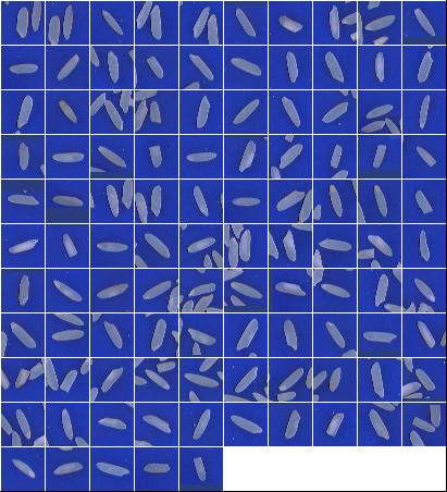 Índices de Qualidade:Peso da Amostra: 100.00 g ( 100.00 %) Discriminação dos defeitos: Inteiros Totais: 93.74 g (93.74 %) Inteiros Vitreos: 57.51 g (57.51 %) Brancura Total 136.95 Brancura Vétrea 135.39 |