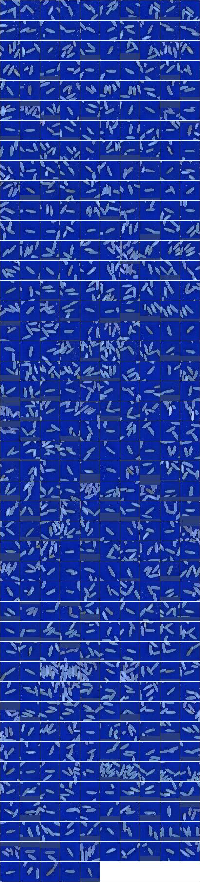 Índices de Qualidade:Peso da Amostra: 100.00 g ( 100.00 %) Discriminação dos defeitos: Inteiros OK: 72.84 g (72.84 %) Brancura Total 138.33 Brancura Vétrea 136.69 |