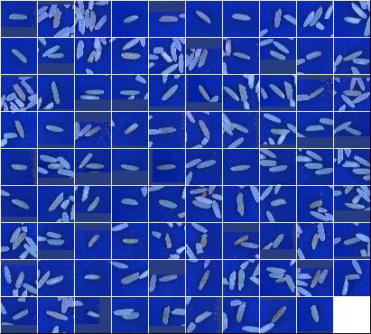Índices de Qualidade:Peso da Amostra: 100.00 g ( 100.00 %) Discriminação dos defeitos: Inteiros OK: 51.26 g (51.26 %) Brancura Total 146.32 Brancura Vétrea 131.40 |